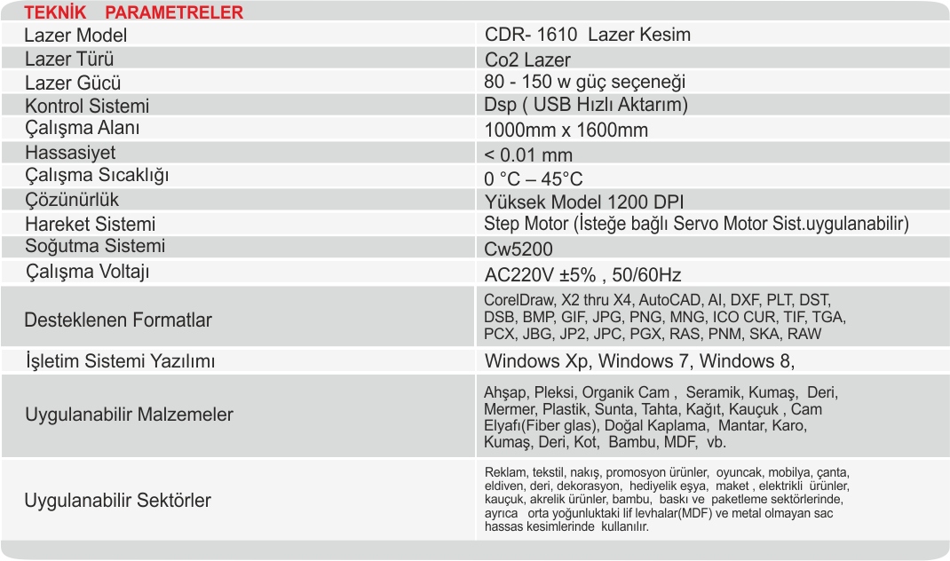 ◆ CDR1610 lazer kesim makinesi, kesme ve kazıma hassasiyeti konusunda yüksek gereksinime sahip kullanıcılar